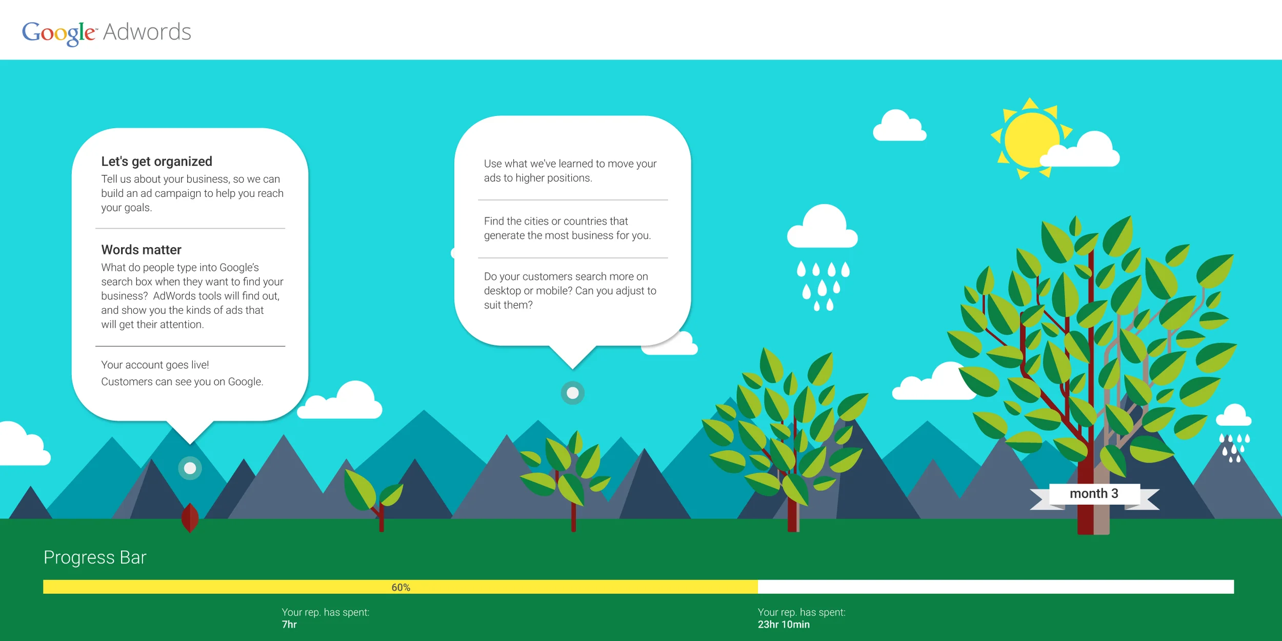 When a client decides to advertised their business on Google, they're on a three month journey with AdWords. The PDF is intended to be a guide for the clients to show their business is on the way to success.