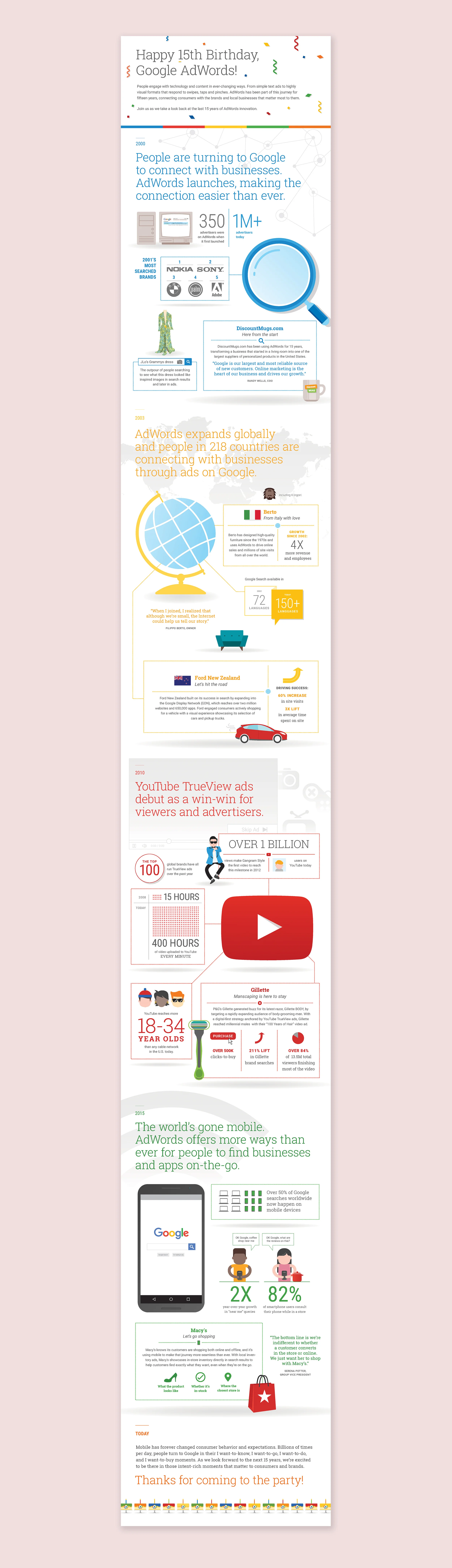 Infographics / While at Google, I was asked to design infographics for AdWords. AdWords is an advertising service provided by Google. It allows businesses to display ads on Google and its advertising network.